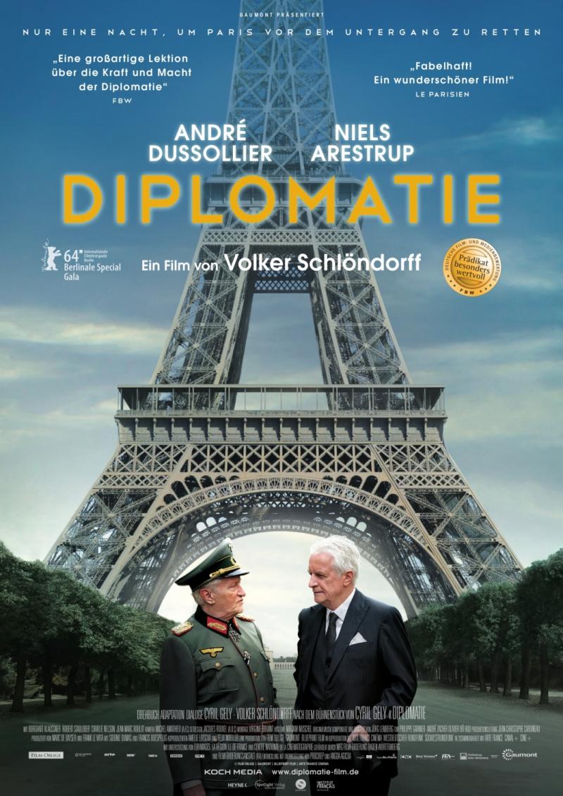Paris, 1944. General Dietrich von Choltitz erhält von Hitler den Auftrag, die Hauptstadt Frankreichs dem Erdboden gleich zu machen. Akribisch lässt von Choltitz alles vorbereiten, Sprengsätze anbringen, Experten befragen, Soldaten postieren. Doch in der Nacht zum 25. August, kurz bevor der endgültige Befehl erteilt wird, betritt der schwedische Generalkonsul Raoul Nordling das Zimmer des Generals. Er versucht alles, um die Kulturmetropole zu retten. Volker Schlöndorffs Film, der auf dem gleichnamigen Theaterstück von Cyril Gély beruht, zeichnet ein Treffen zweier historischer Figuren nach, das es so nie gegeben hat. Und doch beruhen die Eckpunkte auf Tatsachen. Denn in der Tat hatte von Choltitz Zweifel an der Entscheidung, Paris in die Luft zu sprengen und erteilte letzten Endes genau diesen Befehl nicht. Ebenso ist die Ehrung des Generalkonsuls Nordling für die Rettung der Stadt historisch verbürgt. Sowohl der Film als auch das Theaterstück stützen sich in ihrem Szenario auf diese historischen Eckdaten. Und Schlöndorff gelingt es, das Bühnenstück mit gezielt eingesetzten filmischen Mitteln in ein spannendes und atmosphärisch packendes filmisches Kammerspiel zu verwandeln. Nur wenige Szenen spielen außerhalb des Besprechungszimmers, nur selten verlässt die Kamera die Kontrahenten, die sich als ebenbürtige Gegner und Gesprächspartner begegnen. Niels Arestrup als Dietrich von Choltitz und André Dussollier als RaoulNordling stehen sich in nichts nach, ihre Argumente sind wohlweislich gewählt, jeder Satz steckt voller Doppelbödigkeiten und Subtext. Auch auch der Zuschauer erkennt erst nach und nach, mit welchen Tricks Nordling arbeitet, um eine Rettung in letzter Sekunde zu ermöglichen. DIPLOMATIE ist ein konzentriert erzählter, spannender und komplexer Film über ein (fiktives) Stück der Geschichte. Dazu eine großartige Lektion über die Kraft und Macht der Diplomatie.Filminfos