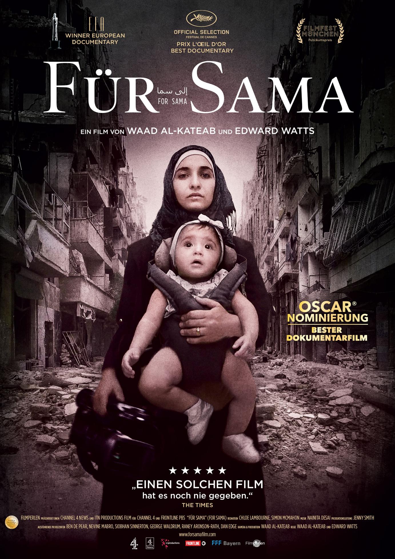 FÜR SAMA ist ein intimer, persönlicher und zutiefst ergreifender Film während des syrischen Bürgerkriegs aus der Sicht einer jungen Frau und Mutter.Als Waad Al-Kateab und ihr Mann Hamza mit ihrer kleinen Tochter Sama die Stadt Aleppo in Syrien verlassen, liegen hinter ihnen fünf Jahre, in denen sie mitansehen mussten, wie ihre Heimat von syrischen Truppen besetzt wurde, wie Menschen verfolgt und getötet werden. Fünf Jahre, in denen Hamza unter den schwierigsten Umständen versucht, als Arzt fast im Alleingang ein Krankenhaus am Leben zu erhalten. Und Waad alles auf Video festhält, was in Aleppo geschieht. Zunächst tut sie es, weil sie es als angehende Journalistin für ihre Pflicht hält. Nachdem Sama aber geboren wurde, tut sie es für sie. Um ihr zu erklären, warum es für sie so wichtig war, ohne Unterlass für ihre Heimat zu kämpfen. Waad Al-Kateab hat schon während der Belagerung ihr Videomaterial dem britischen Fernsehsender Channel 4 zur Verfügung gestellt und es nun gemeinsam mit dem Co-Regisseur Edward Watts aufbereitet – entstanden ist ein beeindruckendes Videotagebuch, das fesselt und erschüttert. Denn Waad Al-Kateab hält mit radikalem Mut alles fest, was um sie herum geschieht. Dazu gehören Szenen des Leids, des Sterbens und der Verzweiflung aufgrund einer aussichtslosen Lage. Doch ebenso sieht man Momente der Hoffnung, des Lachens, des Zusammenhalts. Und wenn die beste Freundin von Waad von ihrem Mann eine Khaki geschenkt bekommt, was in Zeiten der Belagerung, wo frisches Obst und Gemüse fehlen, ein Ding der Unmöglichkeit ist, dann spürt man, dass die fast kindliche Freude sich wie ein Sonnenstrahl in der ganzen Umgebung verbreitet. Und wenn man als Zuschauer wieder und wieder den Bombenalarm zu hören bekommt, der für Waad und Hamza bereits Alltag ist, dann begreift man, wieviel Mut diese Frau aufbringen muss, um die Zeitdokumente für die Außenwelt festzuhalten. Klar und konsequent folgt der Film der Erzählung der jungen Frau und ihrer Familie. Auf diese Weise hebt sich FÜR SAMA als Erlebnisbericht und Videotagebuch klar von einem klassischen Dokumentarfilm ab und strebt auch genau diese Wirkung an. Denn auf diese Weise macht der Film, sofern das überhaupt möglich ist, auf erschütternde Weise das Leben im Krieg und in der Belagerung greifbar. Mit all dem Grauen, aber auch all der Menschlichkeit. Und so stehen am Ende die Hoffnung und das Versprechen, eines Tages in die Heimat zurückzukehren. FÜR SAMA ist ein ergreifendes filmisches Zeitdokument. Und ein wichtiger Film.
